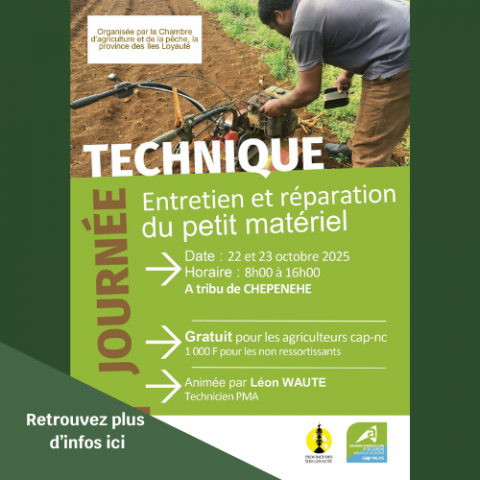 Les 22 et 23 octobre, la CAP-NC et la Province des Îles Loyauté organisent deux journées techniques consacrées à l’entretien et la réparation du petit matériel agricole.
